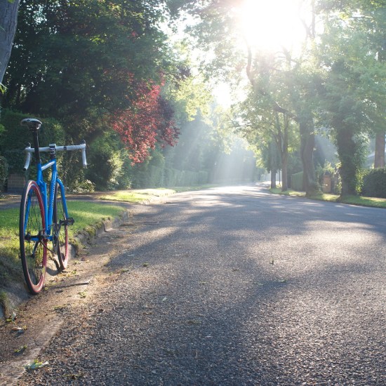 The first example is taken into low, morning sunlight (as studied in another exercise). These are challenging conditions for the meter with very bright and very dark areas. The feature in the picture that appealed to me was the mottled area of the tarmac, caused by the sun passing through the trees. Normally, I might have been tempted to adjust the contrast settings to enhance this and the sun’s rays in Aperture. Instead though, a slight under-exposure of 0.3 stops is enough to give a similar effect.
