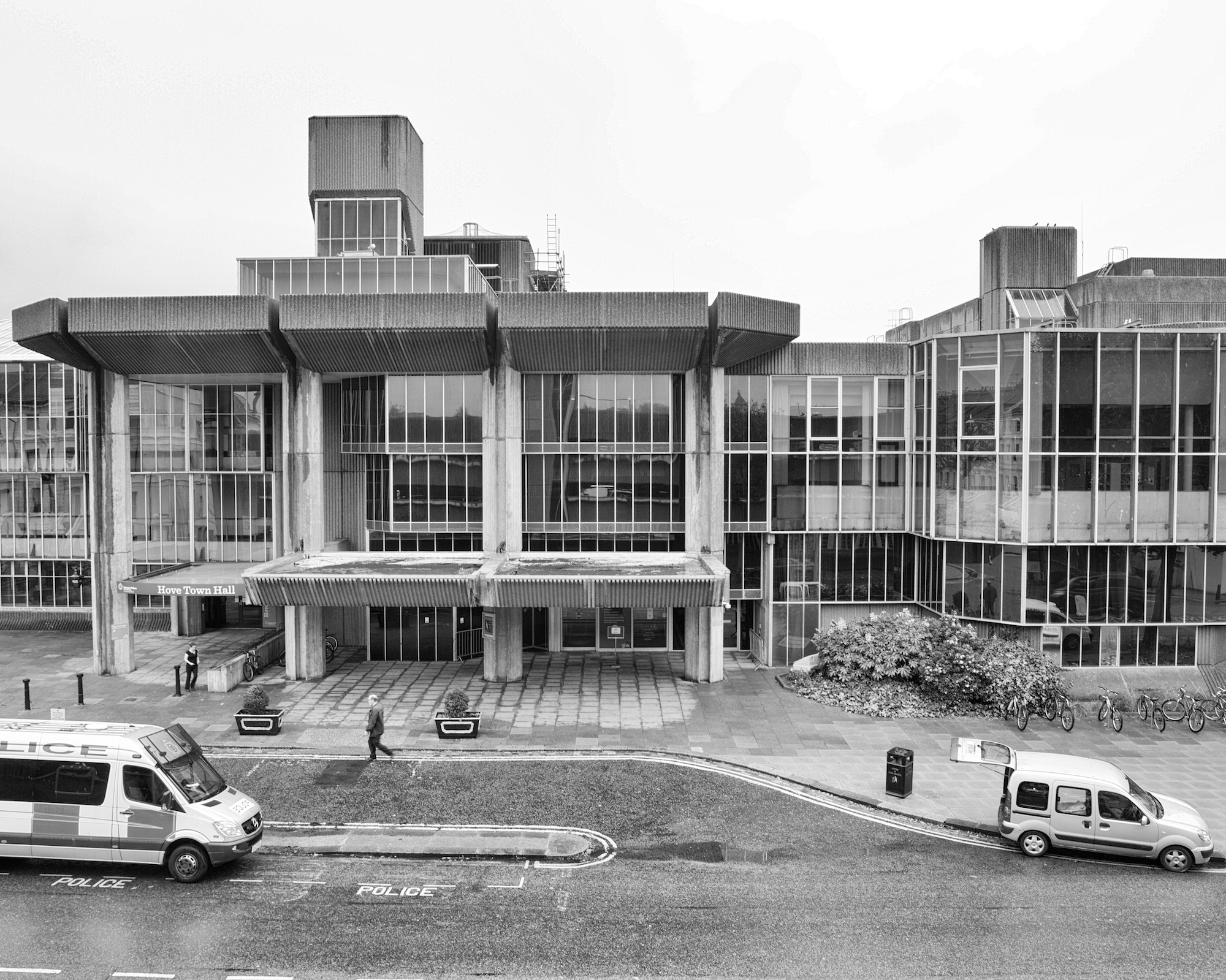 Another brutalist treat from my trip south this week. After the unrelenting strangeness of Richard Seifert’s hotel on the Brighton seafront, just a mile away I found Hove’s town hall, after seeing a timely tweet about it (thanks Gemma, Iain and TBH).