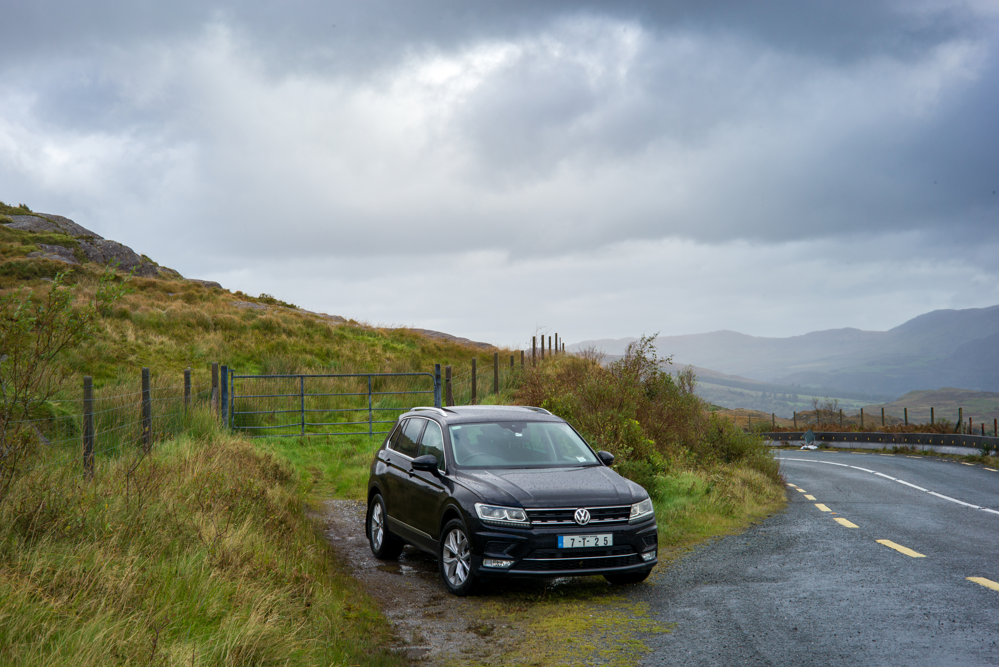 Whenever I’m exploring my new homeland of Ireland, I tend to rely on GoogleMaps to find my way around. My new car (did I mention it?) has built in navigation and so I thought I’d give that a go on the way home. At one point, it turned me off the obvious route and sent me off up a hillside that may have been a shorter distance, but was almost certainly not a quicker one. However, for the second time in just a few miles, an unexpected turn brought me to a spectacular view. As I drove up a tiny road, out of the trees and onto higher ground, I saw this view appear in my mirrors.