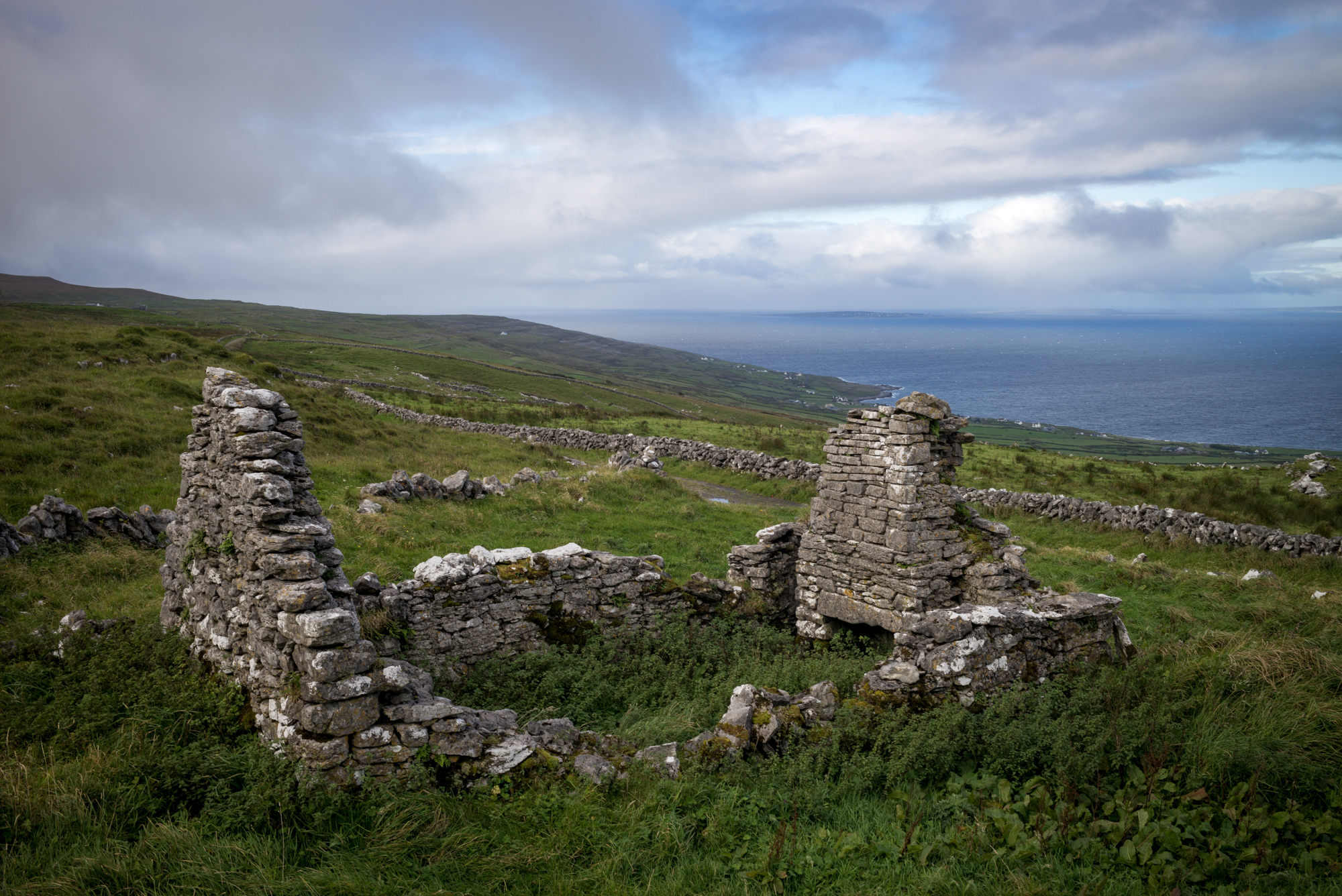 Along the way, there are ruins of a number of buildings. The one above was still inhabited as recently as the 1960’s and is unusual as it’s a pre-Famine dwelling, but is still around. Previously, most of these one room houses had been made of mud and so have succumbed to the weather. Some, like this, have survived because of their unusual use of stone.
