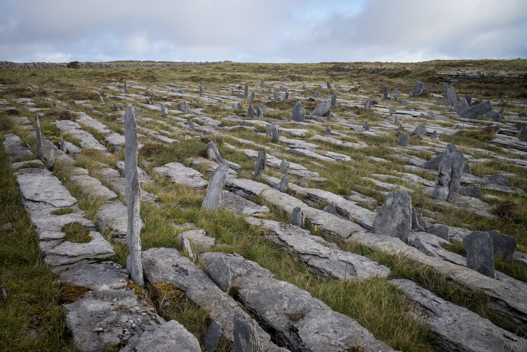 These upright limestone slabs have been embedded into fissures (or clints) of the limestone pavement that forms the Burren landscape. They’re a common sight on the area and is thought to be some sort of primitive navigational tool, used as waymarkers on either secular or pilgrimage routes. In bad weather or poor visibility, they would be an obvious visual indicator in a landscape that can look confusingly similar.