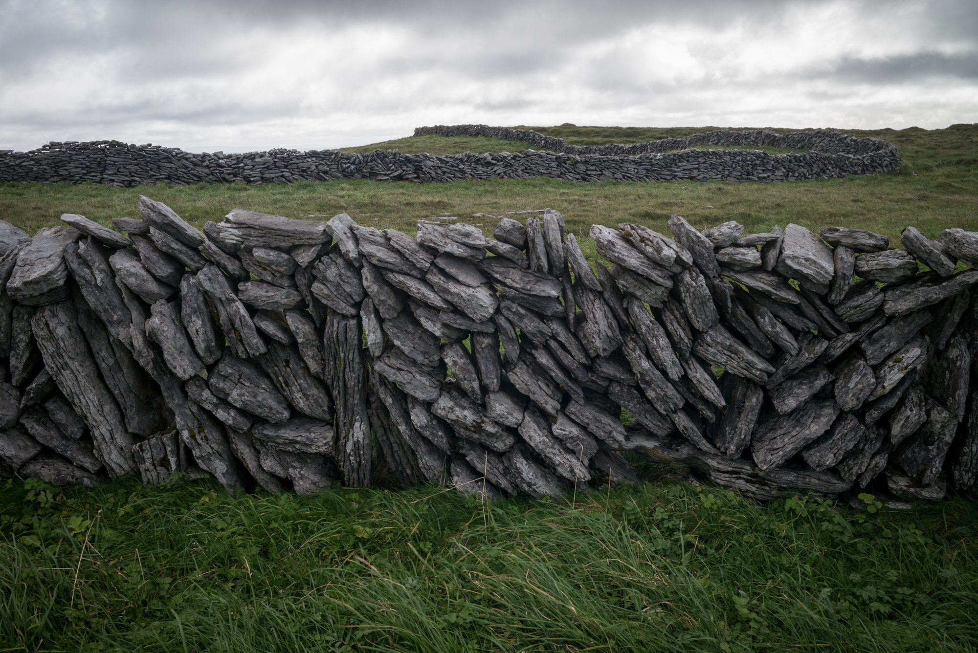 The dry stone walls of the Burren and Aran Islands are also pretty special. There’s no shortage of rock here of course, and building these walls served a dual purpose. Firstly, they would form enclosures for livestock, but the removal of rocks to construct the walls also cleared the grazing land of stone. The walls can be many kilometers long and seem to defy gravity. These loosely stacked, linear piles of rock seem so badly made that they could surely not survive. And yet, they have been around for centuries, surviving the weather and continuous farming use.