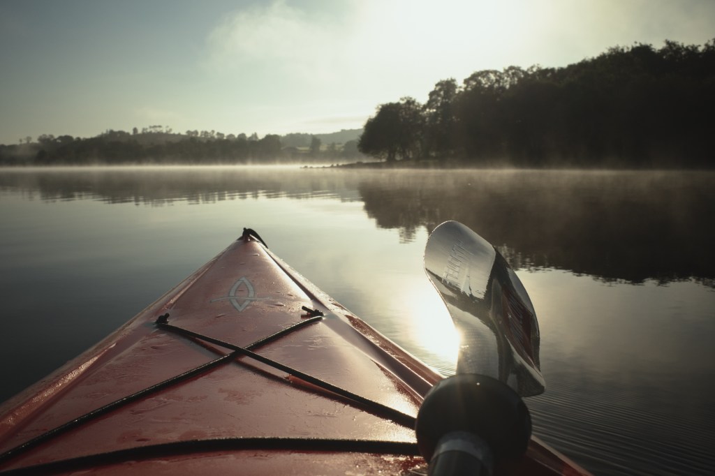 As usual, I never get up as early as planned, but was still on the water by 6:45am. A cold night and early morning sunshine caused a mist over the water that burned off as I brewed my coffee on the far shore from my start point; not before I had chance to snap a few pictures…