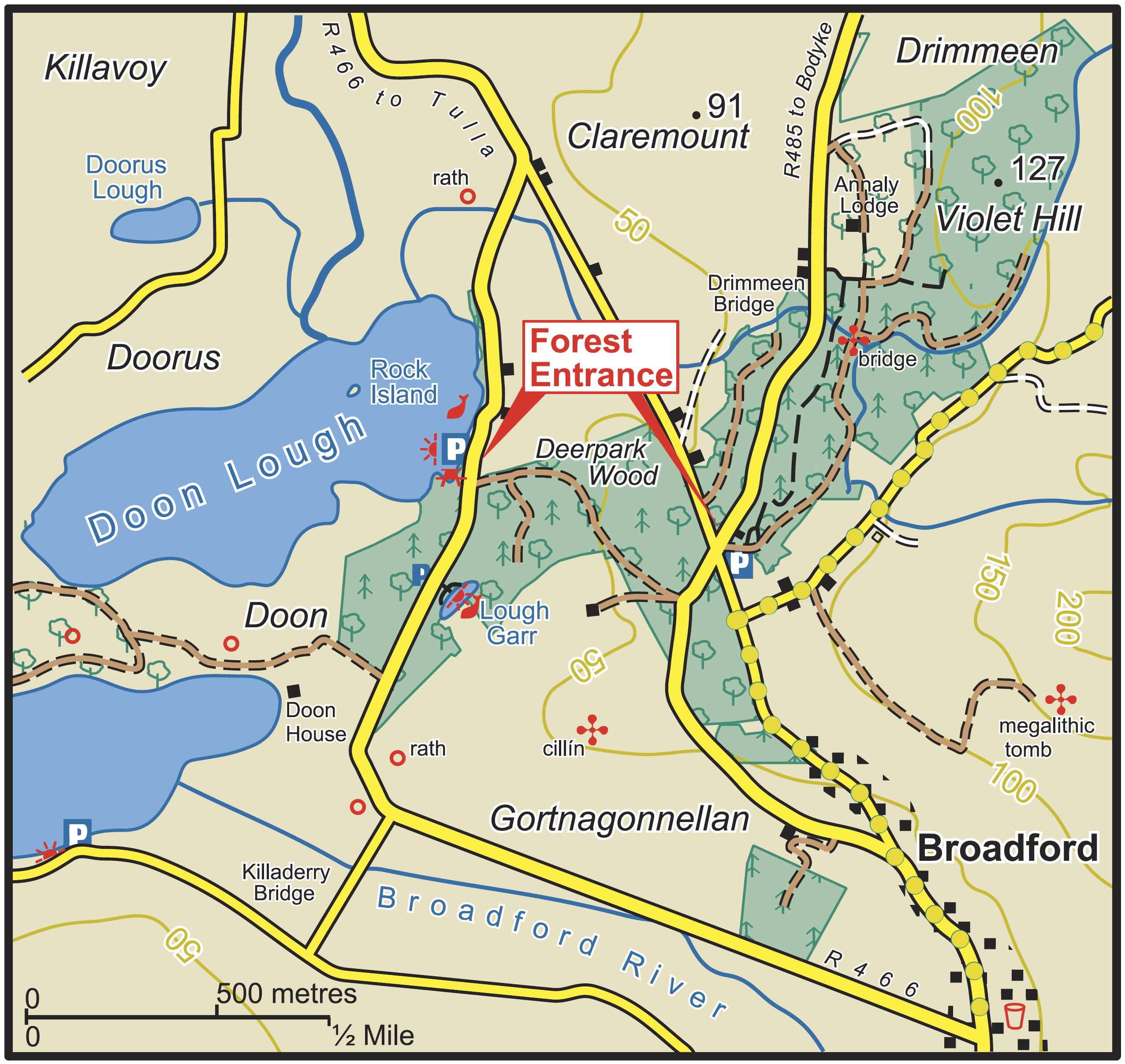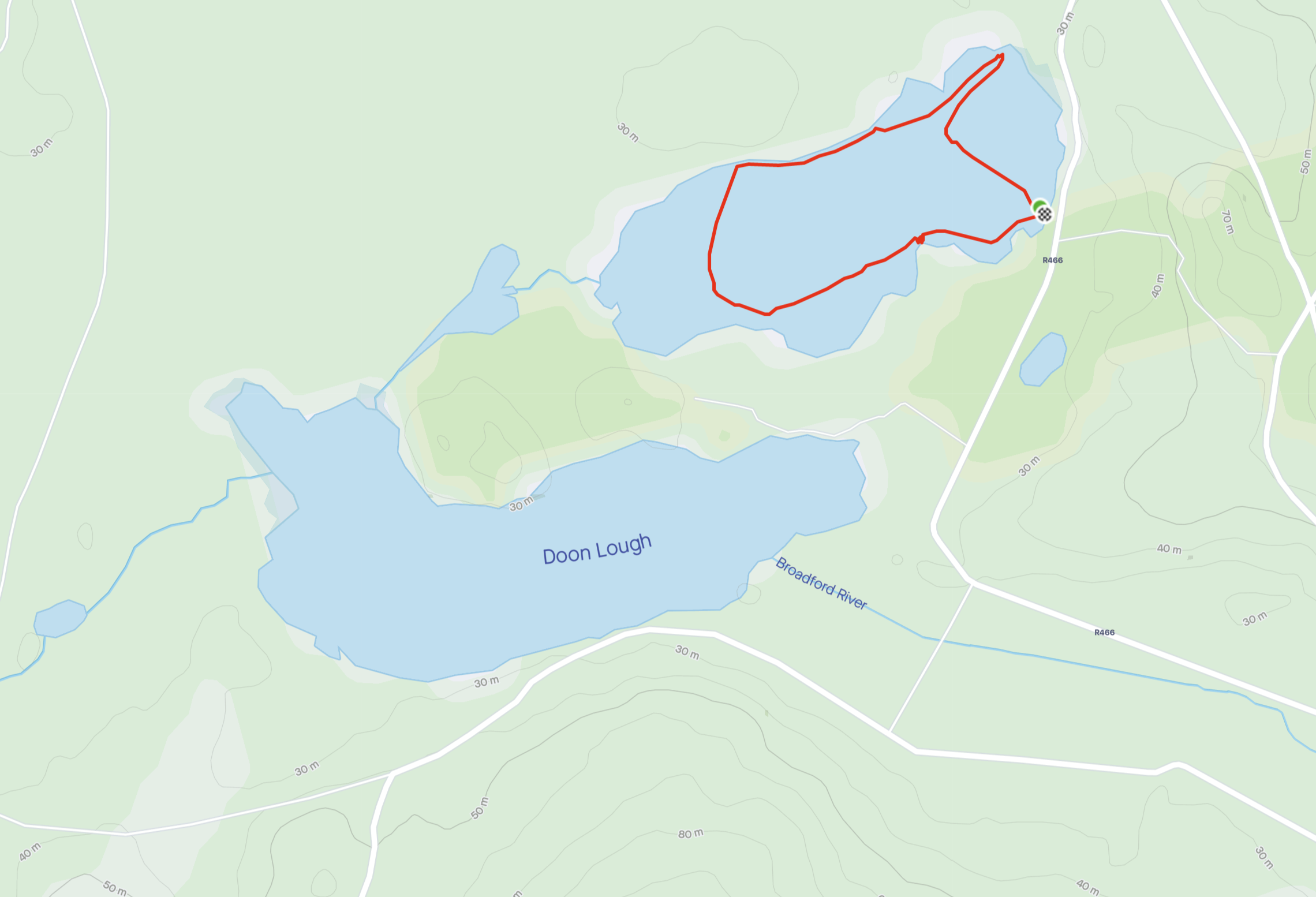 Doon Lough is only 1.2km long but it’s possible to make a decent kayaking trip by taking the slow-moving river that links Doon Lough to its larger neighbour Lough Gar (names are not a strong point in these parts), and looping around each of the lakes.