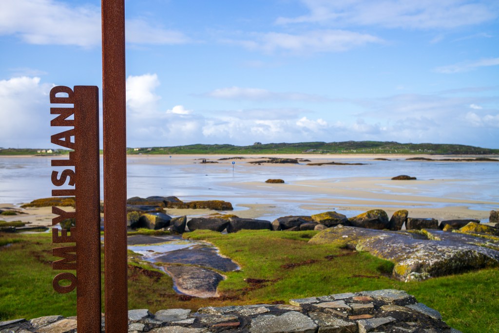 Omey is a small, tidal island off the coast of Connemara, a few miles north-west of Clifden in County Galway. The island offers fantastic views of the coastline and islands further off-shore, and is also home to some ancient archeological sites and an unusual habitat of grass-covered dunes.
