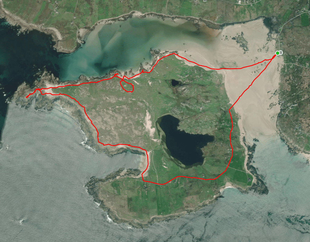 By fluke, the tide timings suited my plans perfectly. I arrived as the tide was just about at its lowest and the 600m wide strand at its driest. It was easy to see how the sand between the mainland and the island could host horse racing one weekend a year, and the sands are so firm that there is a marked ‘road’ between the two.