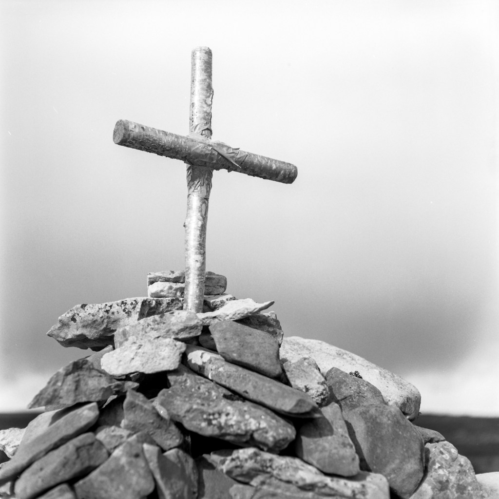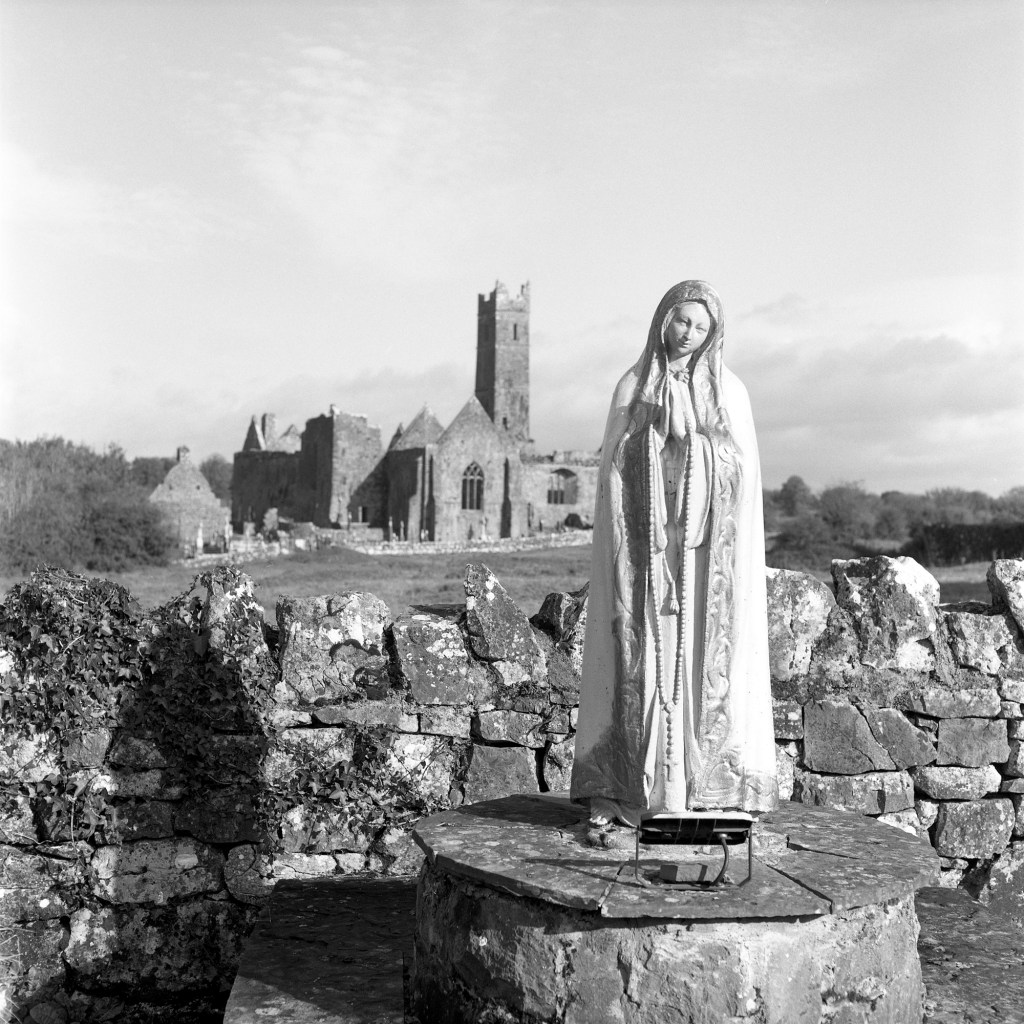 This post contains snaps taken on this (late-October, Bank Holiday) Monday, as I continue along my path to photo-rehab. I headed out with two cameras, a bag of film, and a Google map of holy sites in The Burren. The outing followed on from the previous day shooting the Quin Abbey.