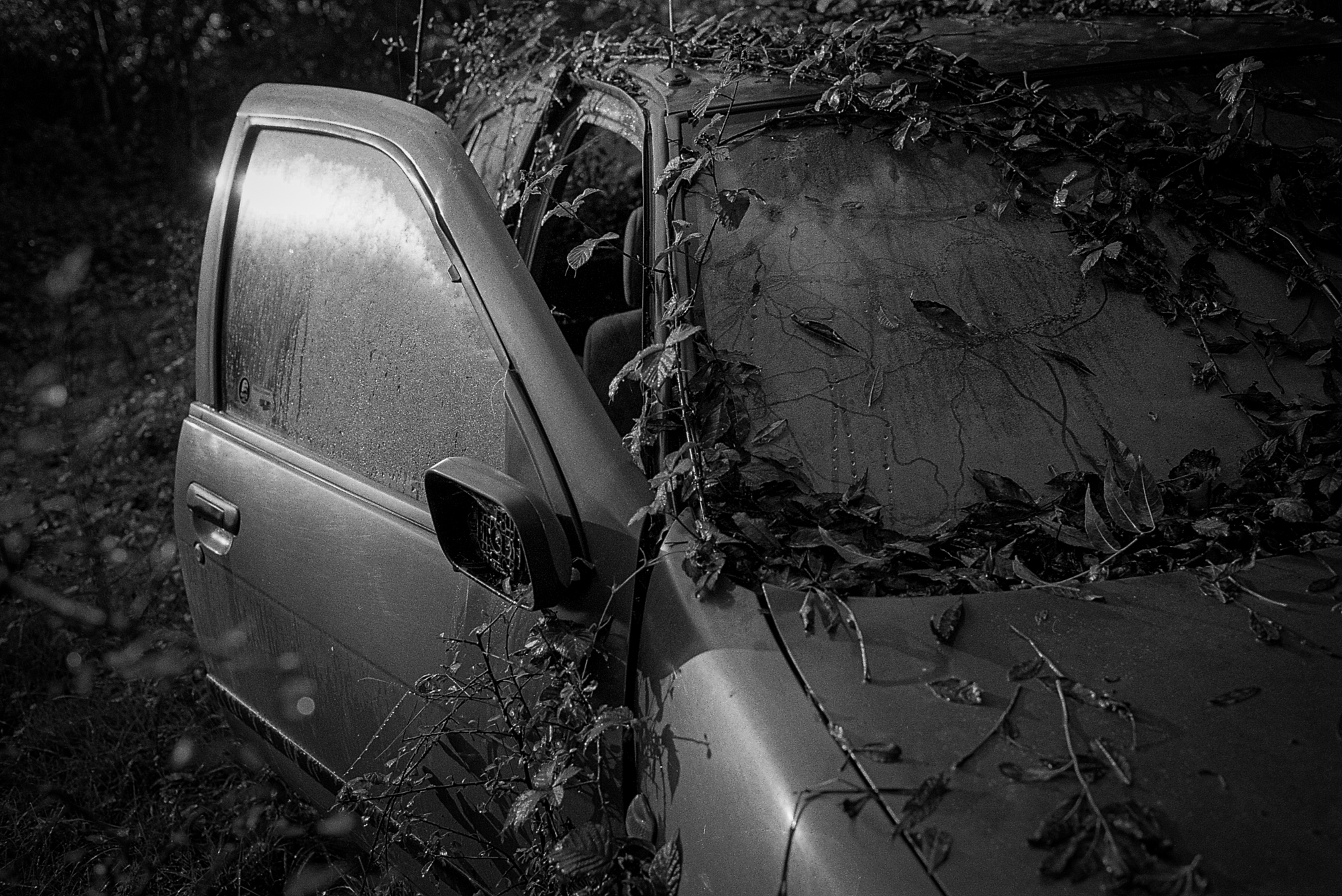 Between the well and where I parked the car, an invisible to most passers-by, were two abandoned cars, slowly becoming strata, and being consumed by nature. Who can resist taking pictures of these?