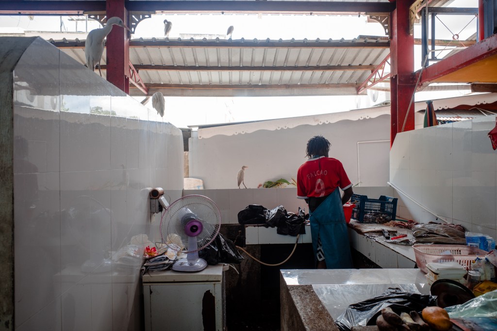 Possibly the worst job in the market, in the 30 degree heat and extremely high humidity, belonged to this guy who was gutting fish and keeping the egrets at bay.
