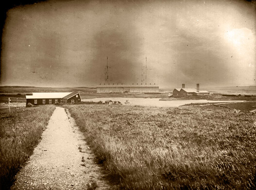 The site must have been something to behold 100 years ago when the first signals were sent – the huge condenser house, the power house with its 6 boilers burning thousands of tons of dried peat dug from the bog surrounding it, and the massive aerial system consisting of 8 wooden masts, each 210 feet high and 1500 feet long. The aerials gave off sparks which could be heard like lightning cracks for miles around, indicative of the huge power and voltages involved (150KW at 15,000 volts).