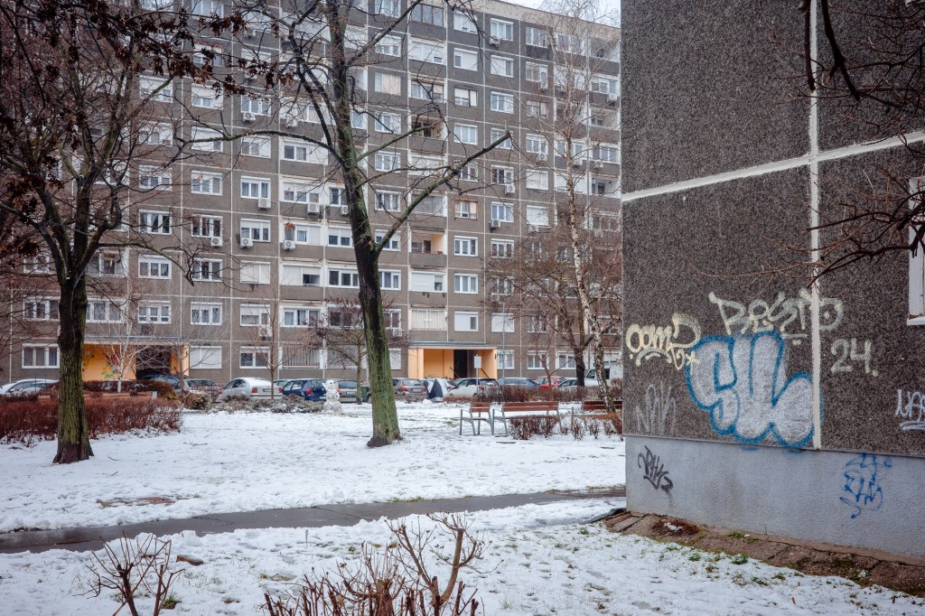 Újpalota sits on the northeastern edge of Budapest and is one of the city’s largest socialist-era housing estates. Built between 1969 and the mid-1970s, it rose quickly on what had previously been open land on the outskirts of the capital. Like many estates of the period, it was constructed using prefabricated concrete “panel” technology, creating rows of mid- and high-rise apartment blocks designed to house thousands of families during Hungary’s post-war housing boom. In total, more than 15,000 flats were built here, forming a vast neighbourhood that once housed around 60,000 residents.